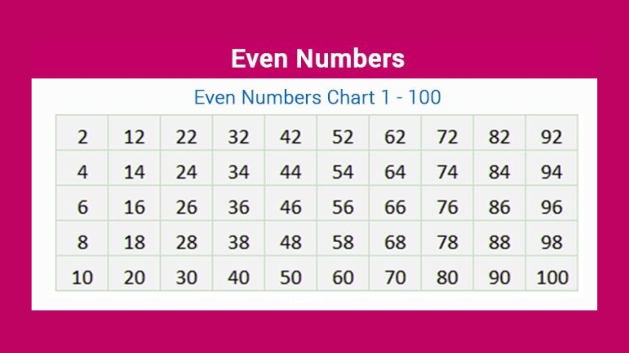 Even numbers are whole numbers that can be divided evenly by 2 with no remainder.