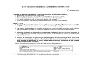 5. Date sheet of back papers will also be the part of regular date sheet hence there will be no separate exam date sheet will be released for back papers.